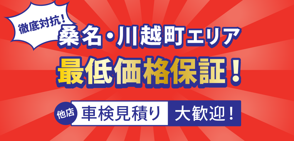 ②カーディーラーと違い、車を販売する為の営業マンの人件費や折込みチラシ等の費用がかかっていない為、その費用分を桑名・いなべ・川越・朝日・菰野・東員エリアのお客様に還元!