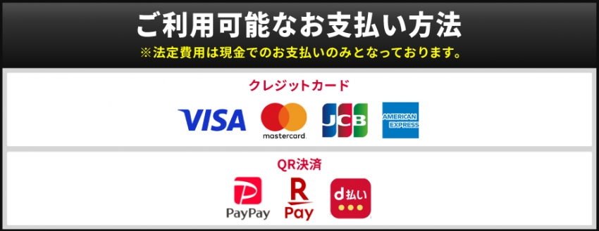 ※法定費用は、現金のみのお支払いとなります。